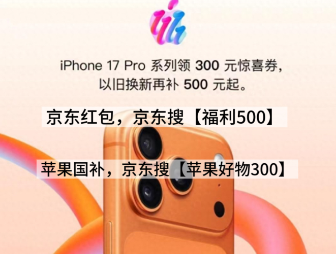 PP搜【苹果好物300】领苹果惊喜券京东苹果优惠券专属口令领取是京东A,主流机型享15%补贴iPhone最新系列,省500元单件最高。